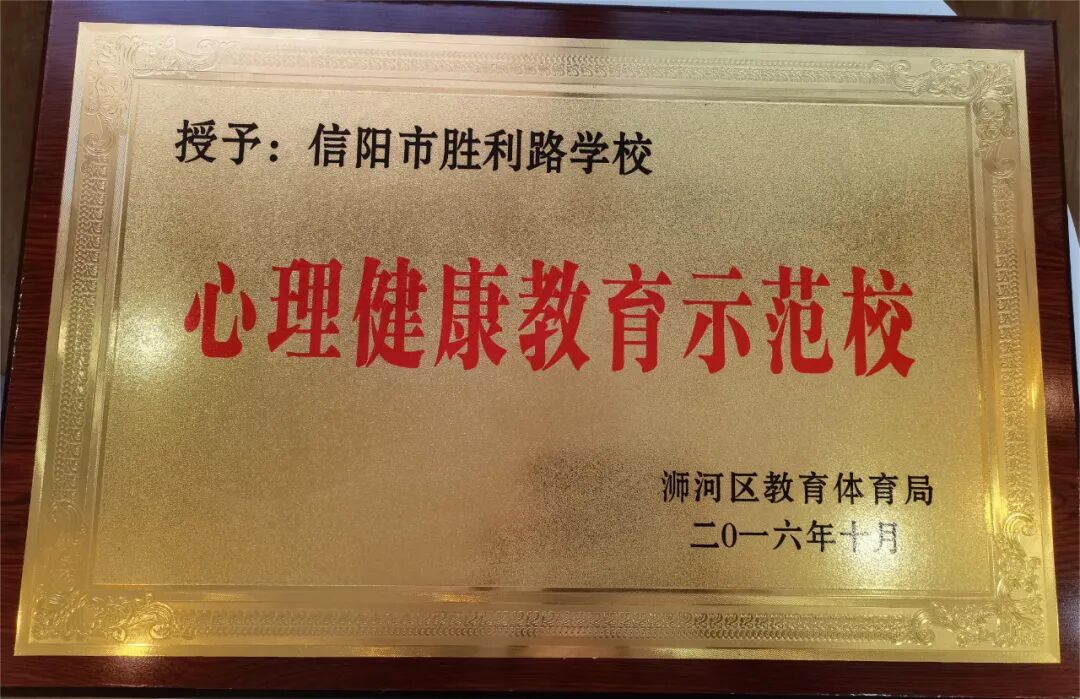 信阳市胜利路学校心理健康中心始建于2015年,中心包括接待室、个体咨询室、沙盘室、音乐放松室、宣泄室和团体活动室。由于工作成绩突出,被评为“浉河区心理健康示范校”,被中科院教育研究所授予“校园心理危机预防和干预示范单位”。