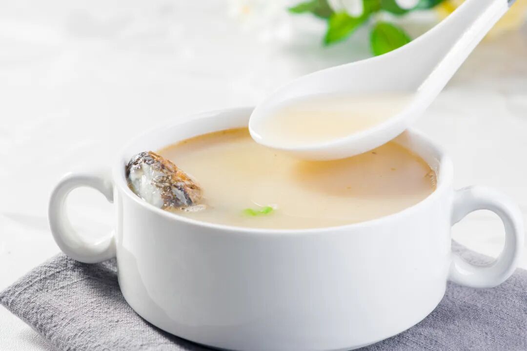 举个例子,当我们熬鱼汤的时间够久,就能熬出乳白的鱼汤。这其实就是鱼胶这种天然乳化剂在鱼汤中发挥了作用,让鱼肉中的脂肪能在汤中分布的细腻而均匀。